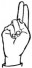 На ћирилици написано МОМИРА ДИМИТРИЈЕВИЋ састоји се из 18 слова [?]. Исписано ћириличном једноручном азбуком за глувонеме: